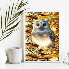 O Quadro Arquétipo Da Prosperidade Ouro Coruja 45X34Cm - Vidro é perfeito para decorar diversos ambientes, como quarto, sala, cozinha, escritório e área gourmet. Com medidas de 45x34cm A3 , cada peça é feita com moldura de madeira branca, garantindo um visual elegante e moderno.