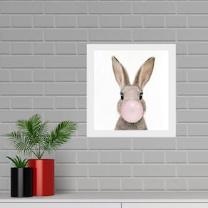 Quadro quadrado coelho chiclete - 33x33cm - com vidro Cor: moldura branca Informações do produto tire todas as suas dúvidas no descritivo abaixo: decoração para quarto, sala, cozinha, escritório, área gourmet e muito mais. Chega de paredes vazias medidas - cada peça tem 33x33cm. Material do papel - papel fotográfico brilhante de altíssima resolução acabamento - todos os quadros são acompanhados de vidro para proteção da imagem. - moldura em madeira maciça na cor preta ou branca conforme produto escolhido e pendurador . - os quadros são embalados de forma segura com plástico bolha com camada dupla de acordo com o tamanho dos quadros. - de 3 meses. Meu quadro chegou. Como posso fixá-lo Você precisa apenas de um martelo e um prego, pois os quadros já vão acompanhados de penduradores. Esta é a forma mais indicada. Como posso limpar meu quadro A limpeza é feita como um móvel comum da sua casa. Apenas um pano seco ou espanador são suficientes para tal Marca: Não Informado