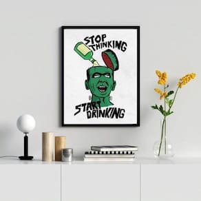 Quadro Stop Thinking Start Drinking 24X18Cm O Quadro Stop Thinking Start Drinking é perfeito para trazer um toque de personalidade e estilo para a decoração de diversos ambientes, como quarto, sala, cozinha, escritório, área gourmet e muito mais. Chega de paredes vazias! Com medidas de 24x18cm A5 , o quadro possui moldura de madeira branca, que confere um acabamento elegante e durável. Além disso, o papel utilizado é fotográfico brilhante de altíssima resolução, garantindo uma imagem nítida e vibrante. Para proteger a imagem, o quadro é acompanhado de uma película de acetato, que preserva a qualidade e evita danos ao longo do tempo. Além disso, a embalagem é feita com plástico bolha de camada dupla, garantindo a segurança durante o transporte. O Quadro Stop Thinking Start Drinking possui de 3 meses, para que você possa adquirir com tranquilidade. E a instalação é super simples, basta utilizar um martelo e um prego, pois os quadros já vão acompanhados de penduradores. Caso prefira, também é possível fixá-lo com fita dupla face de alta qualidade. A limpeza do quadro é muito fácil, basta utilizar um pano seco ou um espanador, como você já faz com os móveis da sua casa. Compre já o seu Quadro Stop Thinking Start Drinking e transforme a sua decoração! Marca: Não Informado