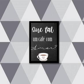 Quadro que tal um café com amor 45x34cm - com vidro Moldura: madeira preta Informações do produto tire todas as suas dúvidas no descritivo abaixo: decoração para quarto, sala, cozinha, escritório, área gourmet e muito mais. Chega de paredes vazias medidas - cada peça tem 45x34cm a3 . Material do papel - papel fotográfico brilhante de altíssima resolução acabamento - todos os quadros são acompanhados de vidro para proteção da imagem. - moldura em madeira maciça na cor preta e pendurador . - os quadros são embalados de forma segura com plástico bolha com camada dupla de acordo com o tamanho dos quadros. - de 3 meses. Meu quadro chegou. Como posso fixá-lo Você precisa apenas de um martelo e um prego, pois os quadros já vão acompanhados de penduradores. Esta é a forma mais indicada. Como posso limpar meu quadro A limpeza é feita como um móvel comum da sua casa. Apenas um pano seco ou espanador são suficientes para tal Marca: Não Informado
