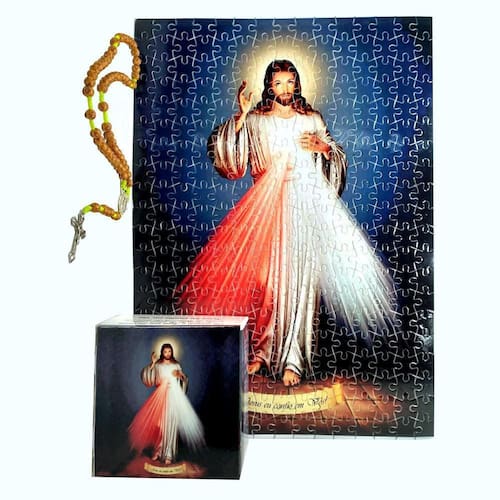 Quadro Decorativo Quebra-Cabeça Jesus Misericordioso de 300 peças + Terço Especial