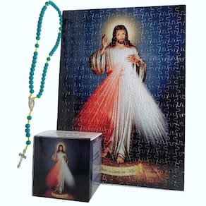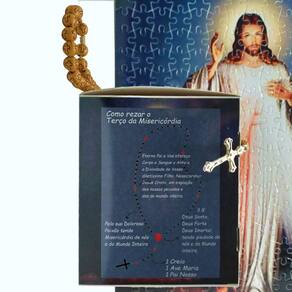 Quadro Decorativo Quebra-Cabeça Jesus Misericordioso de 300 peças + Terço Especial