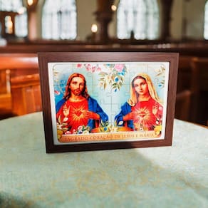 Quadro Quebra-cabeça MDF 35 peças Sagrado Coração de Jesus e Maria Quadro Quebra-cabeça MDF 35 peças Sagrado Coração de Jesus e Maria
