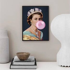 Quadro queen elizabeth with bubblegum 33x24cm - com vidro Cor: moldura branca Informações do produto tire todas as suas dúvidas no descritivo abaixo: decoração para quarto, sala, cozinha, escritório, área gourmet e muito mais. Chega de paredes vazias medidas - cada peça tem 33x24cm a4 . Material do papel - papel fotográfico brilhante de altíssima resolução acabamento - todos os quadros são acompanhados de vidro para proteção da imagem. - moldura em madeira maciça na cor preta ou branca conforme produto escolhido e pendurador . - os quadros são embalados de forma segura com plástico bolha com camada dupla de acordo com o tamanho dos quadros. Garantia - garantia de 3 meses. Meu quadro chegou. Como posso fixá-lo Você precisa apenas de um martelo e um prego, pois os quadros já vão acompanhados de penduradores. Esta é a forma mais indicada. Como posso limpar meu quadro A limpeza é feita como um móvel comum da sua casa. Apenas um pano seco ou espanador são suficientes para tal