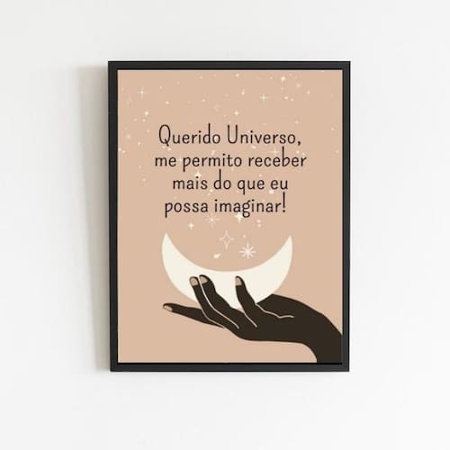 Quadro querido universo me permito receber 33x24cm - com vidro Moldura: madeira preta