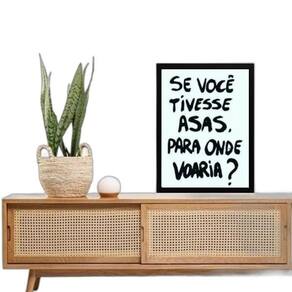 Quadro reflexão - se você tivesse asas 33x24cm Moldura: madeira branca Informações do produto tire todas as suas dúvidas no descritivo abaixo: decoração para quarto, sala, cozinha, escritório, área gourmet e muito mais. Chega de paredes vazias medidas - cada peça tem 33x24cm a4 . Material do papel - papel fotográfico brilhante de altíssima resolução acabamento - todos os quadros são acompanhados de uma película de acetato para proteção da imagem. - os quadros são embalados de forma segura com plástico bolha com camada dupla de acordo com o tamanho dos quadros. - de 3 meses. Meu quadro chegou. Como posso fixá-lo Você precisa apenas de um martelo e um prego, pois os quadros já vão acompanhados de penduradores. Esta é a forma mais indicada. Caso prefira, você pode utilizar uma fita dupla face neste caso, sugerimos de alta qualidade para evitar que descole e seu quadro caia . Como posso limpar meu quadro A limpeza é feita como um móvel comum da sua casa. Apenas um pano seco ou espanador são suficientes para tal Marca: Não Informado Ean: 7896567335272