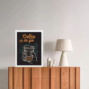 Quadro retrô café - coffee to go 24x18cm - com vidro Moldura: madeira preta Informações do produto tire todas as suas dúvidas no descritivo abaixo: decoração para quarto, sala, cozinha, escritório, área gourmet e muito mais. Chega de paredes vazias medidas - cada peça tem 24x18cm a5 . Material do papel - papel fotográfico brilhante de altíssima resolução acabamento - todos os quadros são acompanhados de vidro para proteção da imagem. - moldura em madeira maciça na cor preta ou branca conforme produto escolhido e pendurador . - os quadros são embalados de forma segura com plástico bolha com camada dupla de acordo com o tamanho dos quadros. Garantia - garantia de 3 meses. Meu quadro chegou. Como posso fixá-lo Você precisa apenas de um martelo e um prego, pois os quadros já vão acompanhados de penduradores. Esta é a forma mais indicada. Como posso limpar meu quadro A limpeza é feita como um móvel comum da sua casa. Apenas um pano seco ou espanador são suficientes para tal