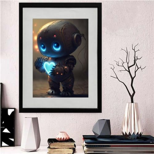 Quadro robozinho brilho da curiosidade 60x48cm Cor: moldura preta Informações do produto tire todas as suas dúvidas no descritivo abaixo: decoração para quarto, sala, cozinha, escritório, área gourmet e muito mais. Chega de paredes vazias medidas - cada peça tem 60x48cm . Material do papel - papel fotográfico brilhante de altíssima resolução acabamento - todos os quadros são acompanhados de vidro para proteção da imagem. - moldura em madeira maciça na cor preta ou branca conforme produto escolhido e pendurador. - paspatur branco com 7cm de largura - os quadros são embalados de forma segura com plástico bolha com camada dupla de acordo com o tamanho dos quadros. Garantia - garantia de 3 meses. Meu quadro chegou. Como posso fixá-lo Você precisa apenas de um martelo e um prego, pois os quadros já vão acompanhados de penduradores. Esta é a forma mais indicada. Como posso limpar meu quadro A limpeza é feita como um móvel comum da sua casa. Apenas um pano seco ou espanador são suficientes para tal