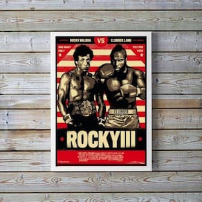 Especificações Técnicas: - Título: Quadro Decorativo Rocky Balboa III 45X34Cm - Com Vidro - Medidas: 45x34cm A3 - Material do papel: Papel fotográfico brilhante de altíssima resolução - Moldura: Madeira preta - Acompanha vidro para proteção da imagem - Acompanha penduradores para fixação na parede