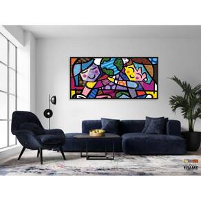 Quadro Romero De Britto _ A New Day 130x60 Moldura Preta 2x2
