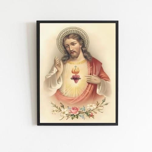 Não deixe suas paredes vazias, adquira agora mesmo o Quadro Arte Sacra Sagrado Coração Jesus Vintage e traga um toque de beleza e significado para o seu espaço.