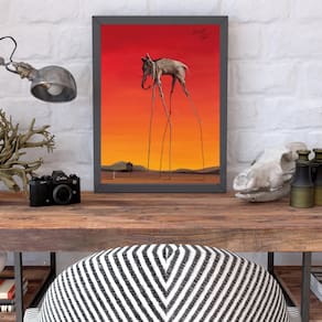 Quadro salvador dalí - elefante 33x24cm Moldura: madeira preta Informações do produto tire todas as suas dúvidas no descritivo abaixo: decoração para quarto, sala, cozinha, escritório, área gourmet e muito mais. Chega de paredes vazias medidas - cada peça tem 33x24cm a4 . Material do papel - papel fotográfico brilhante de altíssima resolução acabamento - todos os quadros são acompanhados de uma película de acetato para proteção da imagem. - os quadros são embalados de forma segura com plástico bolha com camada dupla de acordo com o tamanho dos quadros. - de 3 meses. Meu quadro chegou. Como posso fixá-lo Você precisa apenas de um martelo e um prego, pois os quadros já vão acompanhados de penduradores. Esta é a forma mais indicada. Caso prefira, você pode utilizar uma fita dupla face neste caso, sugerimos de alta qualidade para evitar que descole e seu quadro caia . Como posso limpar meu quadro A limpeza é feita como um móvel comum da sua casa. Apenas um pano seco ou espanador são suficientes para tal Marca: Não Informado Ean: 7896860451464