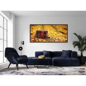 Quadro Sanfona Acordeon Música Folhas Paisagem 130x60 Moldura Preta 2x2