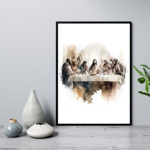 Quadro santa ceia aquarela 24x18cm Moldura: madeira preta Informações do produto tire todas as suas dúvidas no descritivo abaixo: decoração para quarto, sala, cozinha, escritório, área gourmet e muito mais. Chega de paredes vazias medidas - cada peça tem 24x18cm a5 . Material do papel - papel fotográfico brilhante de altíssima resolução acabamento - todos os quadros são acompanhados de uma película de acetato para proteção da imagem. - os quadros são embalados de forma segura com plástico bolha com camada dupla de acordo com o tamanho dos quadros. Garantia - garantia de 3 meses. Meu quadro chegou. Como posso fixá-lo Você precisa apenas de um martelo e um prego, pois os quadros já vão acompanhados de penduradores. Esta é a forma mais indicada. Caso prefira, você pode utilizar uma fita dupla face neste caso, sugerimos de alta qualidade para evitar que descole e seu quadro caia . Como posso limpar meu quadro A limpeza é feita como um móvel comum da sua casa. Apenas um pano seco ou espanador são suficientes para tal