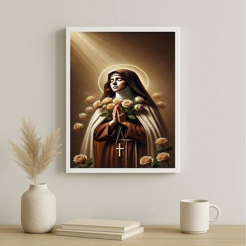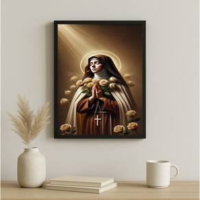 Quadro Santa Teresinha Com Rosas 45x34cm - Cor: Moldura branca