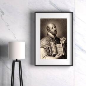 Quadro santo inácio de loyola - 60x48cm Moldura: madeira preta Informações do produto tire todas as suas dúvidas no descritivo abaixo: decoração para quarto, sala, cozinha, escritório, área gourmet e muito mais. Chega de paredes vazias medidas - cada peça tem 60x48cm . Material do papel - papel fotográfico brilhante de altíssima resolução acabamento - todos os quadros são acompanhados de vidro para proteção da imagem. - moldura em madeira maciça na cor preta ou branca conforme produto escolhido e pendurador. - paspatur branco com 7cm de largura - os quadros são embalados de forma segura com plástico bolha com camada dupla de acordo com o tamanho dos quadros. - de 3 meses. Meu quadro chegou. Como posso fixá-lo Você precisa apenas de um martelo e um prego, pois os quadros já vão acompanhados de penduradores. Esta é a forma mais indicada. Como posso limpar meu quadro A limpeza é feita como um móvel comum da sua casa. Apenas um pano seco ou espanador são suficientes para tal Marca: Não Informado
