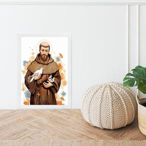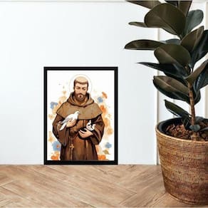 Quadro são francisco de assis - aquarela 24x18cm - com vidro Moldura: madeira preta Informações do produto tire todas as suas dúvidas no descritivo abaixo: decoração para quarto, sala, cozinha, escritório, área gourmet e muito mais. Chega de paredes vazias medidas - cada peça tem 24x18cm a5 . Material do papel - papel fotográfico brilhante de altíssima resolução acabamento - todos os quadros são acompanhados de vidro para proteção da imagem. - moldura em madeira maciça na cor preta ou branca conforme produto escolhido e pendurador . - os quadros são embalados de forma segura com plástico bolha com camada dupla de acordo com o tamanho dos quadros. Garantia - garantia de 3 meses. Meu quadro chegou. Como posso fixá-lo Você precisa apenas de um martelo e um prego, pois os quadros já vão acompanhados de penduradores. Esta é a forma mais indicada. Como posso limpar meu quadro A limpeza é feita como um móvel comum da sua casa. Apenas um pano seco ou espanador são suficientes para tal