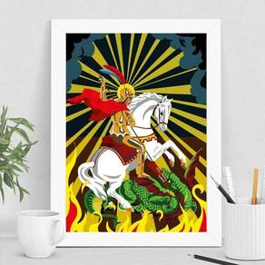 Quadro Decorativo São Jorge Fundo Colorido 33X24Cm