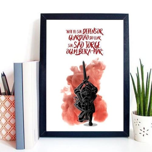 Quadro são jorge ogum guardião 45x34cm Moldura: madeira preta Informações do produto tire todas as suas dúvidas no descritivo abaixo: decoração para quarto, sala, cozinha, escritório, área gourmet e muito mais. Chega de paredes vazias. Medidas - cada peça tem 45x34cm a3 . Material do papel - papel fotográfico brilhante de altíssima resolução acabamento - todos os quadros são acompanhados de uma película de acetato para proteção da imagem. - os quadros são embalados de forma segura com plástico bolha com camada dupla de acordo com o tamanho dos quadros. Garantia - garantia de 3 meses. Meu quadro chegou. Como posso fixá-lo Você precisa apenas de um martelo e um prego, pois os quadros já vão acompanhados de penduradores. Esta é a forma mais indicada. Caso prefira, você pode utilizar uma fita dupla face neste caso, sugerimos de alta qualidade para evitar que descole e seu quadro caia . Como posso limpar meu quadro A limpeza é feita como um móvel comum da sua casa. Apenas um pano seco ou espanador são suficientes para tal