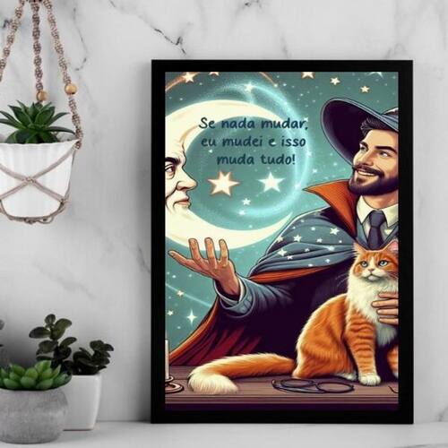 Quadro se nada mudar, eu mudei 24x18cm Cor: moldura preta Informações do produto tire todas as suas dúvidas no descritivo abaixo: decoração para quarto, sala, cozinha, escritório, área gourmet e muito mais. Chega de paredes vazias medidas - cada peça tem 24x18cm a5 . Material do papel - papel fotográfico brilhante de altíssima resolução acabamento - todos os quadros são acompanhados de uma película de acetato para proteção da imagem. - os quadros são embalados de forma segura com plástico bolha com camada dupla de acordo com o tamanho dos quadros. - de 3 meses. Meu quadro chegou. Como posso fixá-lo Você precisa apenas de um martelo e um prego, pois os quadros já vão acompanhados de penduradores. Esta é a forma mais indicada. Caso prefira, você pode utilizar uma fita dupla face neste caso, sugerimos de alta qualidade para evitar que descole e seu quadro caia . Como posso limpar meu quadro A limpeza é feita como um móvel comum da sua casa. Apenas um pano seco ou espanador são suficientes para tal Marca: Não Informado Ean: 7891234548078