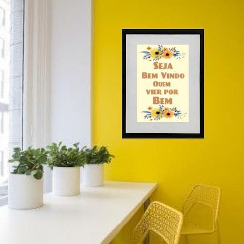 Quadro seja bem vindo quem vier por bem - 60x48cm Moldura: madeira preta Informações do produto tire todas as suas dúvidas no descritivo abaixo: decoração para quarto, sala, cozinha, escritório, área gourmet e muito mais. Chega de paredes vazias medidas - cada peça tem 60x48cm . Material do papel - papel fotográfico brilhante de altíssima resolução acabamento - todos os quadros são acompanhados de vidro para proteção da imagem. - moldura em madeira maciça na cor preta ou branca conforme produto escolhido e pendurador. - paspatur branco com 7cm de largura - os quadros são embalados de forma segura com plástico bolha com camada dupla de acordo com o tamanho dos quadros. Garantia - garantia de 3 meses. Meu quadro chegou. Como posso fixá-lo Você precisa apenas de um martelo e um prego, pois os quadros já vão acompanhados de penduradores. Esta é a forma mais indicada. Como posso limpar meu quadro A limpeza é feita como um móvel comum da sua casa. Apenas um pano seco ou espanador são suficientes para tal