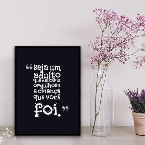 Quadro seja o orgulho de uma criança 24x18cm - com vidro Moldura: madeira preta Informações do produtoDecoração para quarto, sala, cozinha, escritório, área gourmet e muito mais. Chega de paredes vazias Medidas - cada peça tem 24x18cm a5 . Material do papel - papel fotográfico brilhante de altíssima resolução Acabamento - todos os quadros são acompanhados de vidro para proteção da imagem. - moldura em madeira maciça e pendurador. - os quadros são embalados de forma segura com plástico bolha com camada dupla de acordo com o tamanho dos quadros. Garantia - garantia de 3 meses. Meu quadro chegou. Como posso fixá-lo Você precisa apenas de um martelo e um prego, pois os quadros já vão acompanhados de penduradores. Esta é a forma mais indicada. Como posso limpar meu quadro A limpeza é feita como um móvel comum da sua casa. Apenas um pano seco ou espanador são suficientes para tal