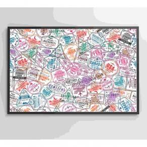 Quadro Selos De Viagens Em Passaporte Medidas 60x40 Cm Tipo De Impressão Vidro Acrílico
