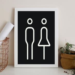 Quadro sinalização banheiro unissex 33x24cm Moldura: madeira preta Informações do produto tire todas as suas dúvidas no descritivo abaixo: decoração para quarto, sala, cozinha, escritório, área gourmet e muito mais. Chega de paredes vazias medidas - cada peça tem 33x24cm a4 . Material do papel - papel fotográfico brilhante de altíssima resolução acabamento - todos os quadros são acompanhados de uma película de acetato para proteção da imagem. - os quadros são embalados de forma segura com plástico bolha com camada dupla de acordo com o tamanho dos quadros. Garantia - garantia de 3 meses. Meu quadro chegou. Como posso fixá-lo Você precisa apenas de um martelo e um prego, pois os quadros já vão acompanhados de penduradores. Esta é a forma mais indicada. Caso prefira, você pode utilizar uma fita dupla face neste caso, sugerimos de alta qualidade para evitar que descole e seu quadro caia . Como posso limpar meu quadro A limpeza é feita como um móvel comum da sua casa. Apenas um pano seco ou espanador são suficientes para tal