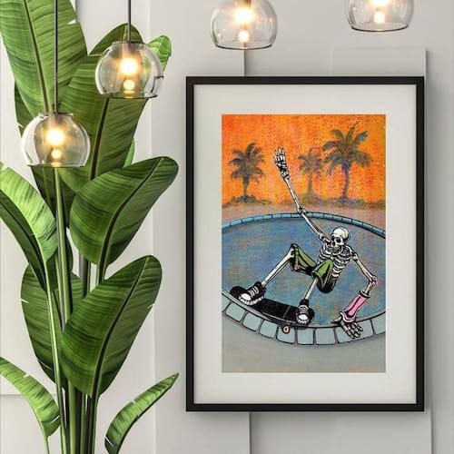 Quadro skate caveira - 60x48cm Moldura: madeira preta Informações do produto tire todas as suas dúvidas no descritivo abaixo: decoração para quarto, sala, cozinha, escritório, área gourmet e muito mais. Chega de paredes vazias medidas - cada peça tem 60x48cm . Material do papel - papel fotográfico brilhante de altíssima resolução acabamento - todos os quadros são acompanhados de vidro para proteção da imagem. - moldura em madeira maciça na cor preta ou branca conforme produto escolhido e pendurador. - paspatur branco com 7cm de largura - os quadros são embalados de forma segura com plástico bolha com camada dupla de acordo com o tamanho dos quadros. Garantia - garantia de 3 meses. Meu quadro chegou. Como posso fixá-lo Você precisa apenas de um martelo e um prego, pois os quadros já vão acompanhados de penduradores. Esta é a forma mais indicada. Como posso limpar meu quadro A limpeza é feita como um móvel comum da sua casa. Apenas um pano seco ou espanador são suficientes para tal