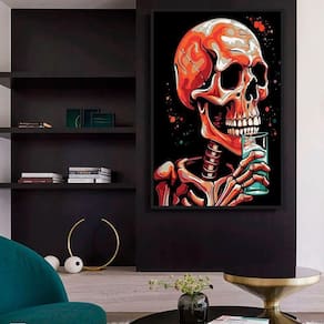 Quadro Skull Drinking -- BR ARTES Borda Infinita - Médio 84x54 -
