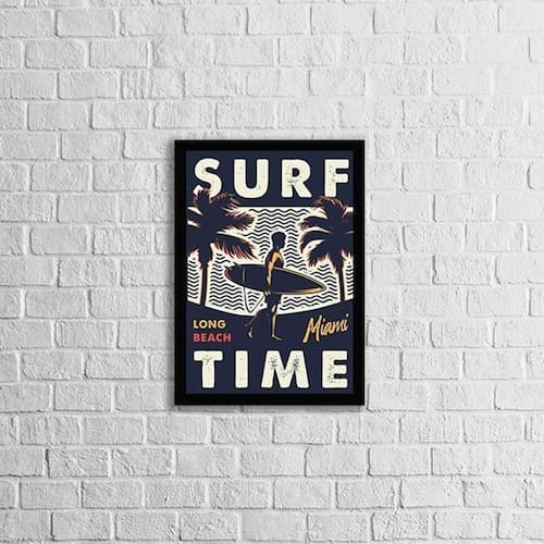 Quadro surf time 33x24cm - com vidro Moldura: madeira preta Informações do produto tire todas as suas dúvidas no descritivo abaixo: decoração para quarto, sala, cozinha, escritório, área gourmet e muito mais. Chega de paredes vazias medidas - cada peça tem 33x24cm a4 . Material do papel - papel fotográfico brilhante de altíssima resolução acabamento - todos os quadros são acompanhados de vidro para proteção da imagem. - moldura em madeira maciça na cor preta e pendurador . - os quadros são embalados de forma segura com plástico bolha com camada dupla de acordo com o tamanho dos quadros. - de 3 meses. Meu quadro chegou. Como posso fixá-lo Você precisa apenas de um martelo e um prego, pois os quadros já vão acompanhados de penduradores. Esta é a forma mais indicada. Como posso limpar meu quadro A limpeza é feita como um móvel comum da sua casa. Apenas um pano seco ou espanador são suficientes para tal Ean: 7895142228886