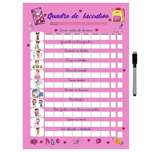 Contém: 1 Quadro do incentivo 40x29cm 1 Caneta para quadro branco com apagador e imã na tampa Ean: 7891562991973