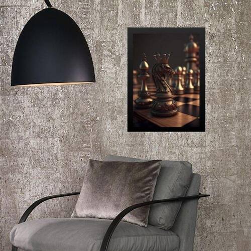 Quadro tabuleiro xadrez- cavalo 45x34cm Moldura: madeira preta Informações do produto tire todas as suas dúvidas no descritivo abaixo: decoração para quarto, sala, cozinha, escritório, área gourmet e muito mais. Chega de paredes vazias. Medidas - cada peça tem 45x34cm a3 . Material do papel - papel fotográfico brilhante de altíssima resolução acabamento - todos os quadros são acompanhados de uma película de acetato para proteção da imagem. - os quadros são embalados de forma segura com plástico bolha com camada dupla de acordo com o tamanho dos quadros. Garantia - garantia de 3 meses. Meu quadro chegou. Como posso fixá-lo Você precisa apenas de um martelo e um prego, pois os quadros já vão acompanhados de penduradores. Esta é a forma mais indicada. Caso prefira, você pode utilizar uma fita dupla face neste caso, sugerimos de alta qualidade para evitar que descole e seu quadro caia . Como posso limpar meu quadro A limpeza é feita como um móvel comum da sua casa. Apenas um pano seco ou espanador são suficientes para tal Homologação Inmetro: CE-BRI/IQB 005923 53892/20-050