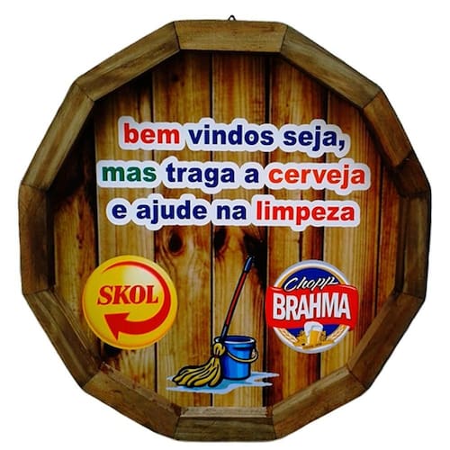 Quadro tampa de barril em madeira rústica - bem vindos seja - cerveja e limpeza Quadro tampa de barril em madeira rústica decorativa Quadro tampa de barril em madeira ecológica rústica de alta qualidade e durabilidade é super indicado para decorar sua área do churrasco com muita criatividade e estilo. Decore o seu bar, sua casa, cozinha, salas em geral, áreas gourmets, sacadas, área da churrasqueira e muito mais. Tenha este belíssimo quadro decorativo, reúna amigos e familiares para partilhar momentos únicos e incríveis ao seu lado. Deixe o seu cantinho do churrasco, áreas gourmet, salas e varandas com um clima agradável, alegre e descontraído. Sendo também uma ótima opção de presente. Dimensões em centímetros: - dimensões cm : altura: 2 cm x comprimento: 32 cm x largura: 32 cm. Características do produto: - confeccionado em madeira pinus tratada ecológica sustentável de alta qualidade e durabilidade. - produzido por artesões profissionais seguindo um padrão de qualidade que atenda o gosto dos nossos clientes Cuidados: - recomendamos o uso de pano levemente umedecido para sua limpeza. do produto: - o produto é muito bem acomodado dentro da caixa, e super embalado para evitar quebras, ainda assim possuímos um sistema de e troca. Imagens meramente ilustrativas - produto artesanal, podendo variar de cor e/ou tonalidade Marca: Retrofenna Decor Ean: 7891588369152