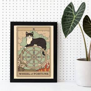 Feito com papel fotográfico brilhante de altíssima resolução, o Quadro Decorativo Carta Tarot Roda Da Fortuna Gato possui um acabamento impecável. Além disso, ele é acompanhado por uma película de acetato para proteger a imagem.