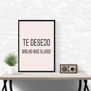 Quadro te desejo brilho nos olhos 45x34cm - com vidro Cor: moldura preta Informações do produto tire todas as suas dúvidas no descritivo abaixo: decoração para quarto, sala, cozinha, escritório, área gourmet e muito mais. Chega de paredes vazias medidas - cada peça tem 45x34cm a3 . Material do papel - papel fotográfico brilhante de altíssima resolução acabamento - todos os quadros são acompanhados de vidro para proteção da imagem. - moldura em madeira maciça na cor preta ou branca conforme produto escolhido e pendurador . - os quadros são embalados de forma segura com plástico bolha com camada dupla de acordo com o tamanho dos quadros. Garantia - garantia de 3 meses. Meu quadro chegou. Como posso fixá-lo Você precisa apenas de um martelo e um prego, pois os quadros já vão acompanhados de penduradores. Esta é a forma mais indicada. Como posso limpar meu quadro A limpeza é feita como um móvel comum da sua casa. Apenas um pano seco ou espanador são suficientes para tal