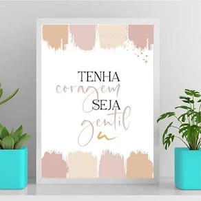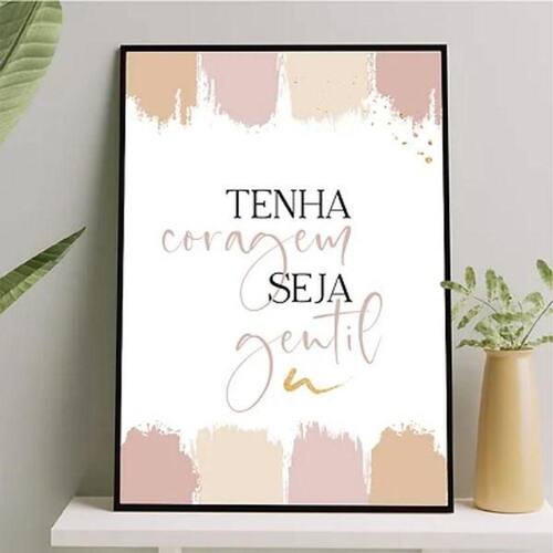 Quadro tenha coragem seja gentil 45x34cm Moldura: madeira preta Informações do produto tire todas as suas dúvidas no descritivo abaixo: decoração para quarto, sala, cozinha, escritório, área gourmet e muito mais. Chega de paredes vazias. Medidas - cada peça tem 45x34cm a3 . Material do papel - papel fotográfico brilhante de altíssima resolução acabamento - todos os quadros são acompanhados de uma película de acetato para proteção da imagem. - os quadros são embalados de forma segura com plástico bolha com camada dupla de acordo com o tamanho dos quadros. Garantia - garantia de 3 meses. Meu quadro chegou. Como posso fixá-lo Você precisa apenas de um martelo e um prego, pois os quadros já vão acompanhados de penduradores. Esta é a forma mais indicada. Caso prefira, você pode utilizar uma fita dupla face neste caso, sugerimos de alta qualidade para evitar que descole e seu quadro caia . Como posso limpar meu quadro A limpeza é feita como um móvel comum da sua casa. Apenas um pano seco ou espanador são suficientes para tal