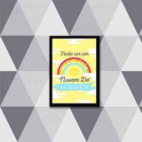 Quadro Tente Ser Um Arco-Íris Na Nuvem De Alguém 24X18Cm Moldura: madeira branca Informações do produto Decoração para quarto, sala, cozinha, escritório, área gourmet e muito mais. Chega de paredes vazias. Medidas - cada peça tem 24x18cm a5 . Material do papel - papel fotográfico brilhante de altíssima resolução Acabamento - todos os quadros são acompanhados de uma película de acetato para proteção da imagem. - moldura em madeira maciça na cor branca e pendurador móvel que pode ser retirado facilmente caso deseje fixar com fita dupla face. - os quadros são embalados de forma segura com plástico bolha com camada dupla de acordo com o tamanho dos quadros. - de 3 meses Meu quadro chegou. Como posso fixá-lo: Você precisa apenas de um martelo e um prego, pois os quadros já vão acompanhados de penduradores. Esta é a forma mais indicada. Caso prefira, você pode utilizar uma fita dupla face neste caso, sugerimos de alta qualidade para evitar que descole e seu quadro caia . Como posso limpar meu quadro: A limpeza é feita como um móvel comum da sua casa. Apenas um pano seco ou espanador são suficientes para tal