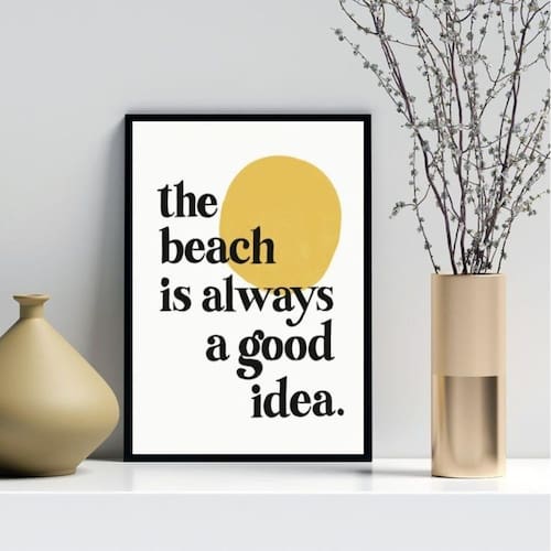 Quadro the beach is always a good idea 33x24cm - com vidro Cor: moldura branca Informações do produto tire todas as suas dúvidas no descritivo abaixo: decoração para quarto, sala, cozinha, escritório, área gourmet e muito mais. Chega de paredes vazias medidas - cada peça tem 33x24cm a4 . Material do papel - papel fotográfico brilhante de altíssima resolução acabamento - todos os quadros são acompanhados de vidro para proteção da imagem. - moldura em madeira maciça na cor preta ou branca conforme produto escolhido e pendurador . - os quadros são embalados de forma segura com plástico bolha com camada dupla de acordo com o tamanho dos quadros. Garantia - garantia de 3 meses. Meu quadro chegou. Como posso fixá-lo Você precisa apenas de um martelo e um prego, pois os quadros já vão acompanhados de penduradores. Esta é a forma mais indicada. Como posso limpar meu quadro A limpeza é feita como um móvel comum da sua casa. Apenas um pano seco ou espanador são suficientes para tal
