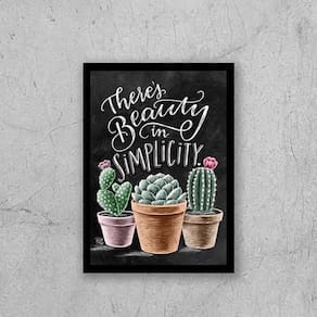 Quadro there's beauty in simplicity - cactos 24x18cm Moldura: madeira preta Informações do produto tire todas as suas dúvidas no descritivo abaixo: decoração para quarto, sala, cozinha, escritório, área gourmet e muito mais. Chega de paredes vazias medidas - cada peça tem 24x18cm a5 . Material do papel - papel fotográfico brilhante de altíssima resolução acabamento - todos os quadros são acompanhados de uma película de acetato para proteção da imagem. - moldura em madeira maciça na cor branca e pendurador móvel que pode ser retirado facilmente caso deseje fixar com fita dupla face. - os quadros são embalados de forma segura com plástico bolha com camada dupla de acordo com o tamanho dos quadros. - de 3 meses prazo de envio pedimos 24 horas úteis no máximo para enviar seu pedido após o envio, segue os prazos normais dos correios, cerca de 7 exceto para norte e nordeste, que pode ser de até 14 . Em diversas cidades, este prazo normalmente é reduzido, mas depende do prazo dos correios. Meu quadro chegou. Como posso fixá-lo Você precisa apenas de um martelo e um prego, pois os quadros já vão acompanhados de penduradores. Esta é a forma mais indicada. Caso prefira, você pode utilizar uma fita dupla face neste caso, sugerimos de alta qualidade para evitar que descole e seu quadro caia . Como posso limpar meu quadro A limpeza é feita como um móvel comum da sua casa. Apenas um pano seco ou espanador são suficientes para tal Marca: Não Informado
