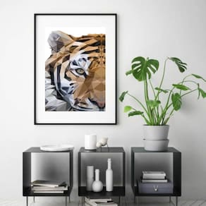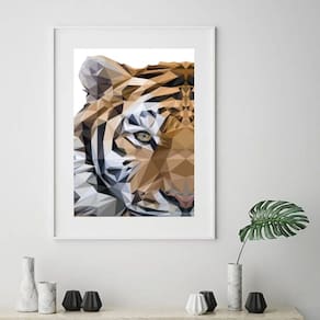Quadro Tigre Geométrico - 60x48cm - Moldura: Madeira branca