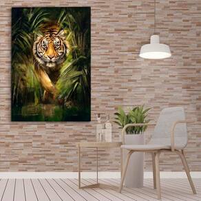 Quadro Tigre Na Grama Quadro Tigre na Grama EGG (180x105) S/ Moldura - -Qualidade Premium (padrão museu)