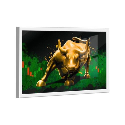 Quadro Touro Bolsa De Valores -- Br Artes Quadro Touro Bolsa de Valores -- BR ARTES Moldura Branca e Vidro - Gigante 180x105 - - Qualidade Premium (padrão museu)