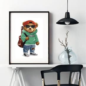 Quadro urso moda fashion - 60x48cm Moldura: madeira preta Informações do produto tire todas as suas dúvidas no descritivo abaixo: decoração para quarto, sala, cozinha, escritório, área gourmet e muito mais. Chega de paredes vazias medidas - cada peça tem 60x48cm . Material do papel - papel fotográfico brilhante de altíssima resolução acabamento - todos os quadros são acompanhados de vidro para proteção da imagem. - moldura em madeira maciça na cor preta ou branca conforme produto escolhido e pendurador. - paspatur branco com 7cm de largura - os quadros são embalados de forma segura com plástico bolha com camada dupla de acordo com o tamanho dos quadros. Garantia - garantia de 3 meses. Meu quadro chegou. Como posso fixá-lo Você precisa apenas de um martelo e um prego, pois os quadros já vão acompanhados de penduradores. Esta é a forma mais indicada. Como posso limpar meu quadro A limpeza é feita como um móvel comum da sua casa. Apenas um pano seco ou espanador são suficientes para tal