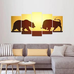Quadro Urso vs Touro Mosaico 5 Peças decorativo