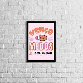 Quadro vença seus medos e ame-se mais 33x24cm - com vidro Moldura: madeira preta Informações do produto tire todas as suas dúvidas no descritivo abaixo: decoração para quarto, sala, cozinha, escritório, área gourmet e muito mais. Chega de paredes vazias medidas - cada peça tem 33x24cm a4 . Material do papel - papel fotográfico brilhante de altíssima resolução acabamento - todos os quadros são acompanhados de vidro para proteção da imagem. - moldura em madeira maciça na cor preta e pendurador . - os quadros são embalados de forma segura com plástico bolha com camada dupla de acordo com o tamanho dos quadros. Garantia - garantia de 3 meses. Meu quadro chegou. Como posso fixá-lo Você precisa apenas de um martelo e um prego, pois os quadros já vão acompanhados de penduradores. Esta é a forma mais indicada. Como posso limpar meu quadro A limpeza é feita como um móvel comum da sua casa. Apenas um pano seco ou espanador são suficientes para tal Ean: 7895142227988