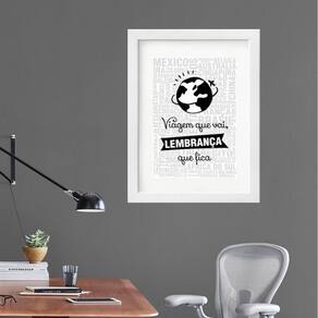 Quadro viagem vai lembrança fica - 60x48cm Moldura: madeira branca Informações do produto tire todas as suas dúvidas no descritivo abaixo: decoração para quarto, sala, cozinha, escritório, área gourmet e muito mais. Chega de paredes vazias medidas - cada peça tem 60x48cm . Material do papel - papel fotográfico brilhante de altíssima resolução acabamento - todos os quadros são acompanhados de vidro para proteção da imagem. - moldura em madeira maciça na cor preta ou branca conforme produto escolhido e pendurador. - paspatur branco com 7cm de largura - os quadros são embalados de forma segura com plástico bolha com camada dupla de acordo com o tamanho dos quadros. - de 3 meses. Meu quadro chegou. Como posso fixá-lo Você precisa apenas de um martelo e um prego, pois os quadros já vão acompanhados de penduradores. Esta é a forma mais indicada. Como posso limpar meu quadro A limpeza é feita como um móvel comum da sua casa. Apenas um pano seco ou espanador são suficientes para tal Marca: Não Informado