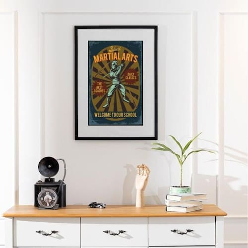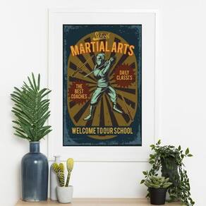 Quadro vintage artes marciais - 60x48cm Cor: moldura preta Informações do produto tire todas as suas dúvidas no descritivo abaixo: decoração para quarto, sala, cozinha, escritório, área gourmet e muito mais. Chega de paredes vazias medidas - cada peça tem 60x48cm . Material do papel - papel fotográfico brilhante de altíssima resolução acabamento - todos os quadros são acompanhados de vidro para proteção da imagem. - moldura em madeira maciça na cor preta ou branca conforme produto escolhido e pendurador. - paspatur branco com 7cm de largura - os quadros são embalados de forma segura com plástico bolha com camada dupla de acordo com o tamanho dos quadros. - de 3 meses. Meu quadro chegou. Como posso fixá-lo Você precisa apenas de um martelo e um prego, pois os quadros já vão acompanhados de penduradores. Esta é a forma mais indicada. Como posso limpar meu quadro A limpeza é feita como um móvel comum da sua casa. Apenas um pano seco ou espanador são suficientes para tal Marca: Não Informado