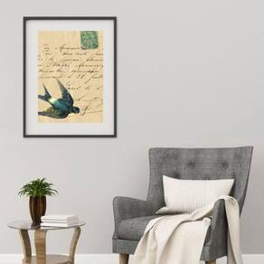 Quadro vintage carta antiga passarinho - 60x48cm Moldura: madeira branca Informações do produto tire todas as suas dúvidas no descritivo abaixo: decoração para quarto, sala, cozinha, escritório, área gourmet e muito mais. Chega de paredes vazias medidas - cada peça tem 60x48cm . Material do papel - papel fotográfico brilhante de altíssima resolução acabamento - todos os quadros são acompanhados de vidro para proteção da imagem. - moldura em madeira maciça na cor preta ou branca conforme produto escolhido e pendurador. - paspatur branco com 7cm de largura - os quadros são embalados de forma segura com plástico bolha com camada dupla de acordo com o tamanho dos quadros. Garantia - garantia de 3 meses. Meu quadro chegou. Como posso fixá-lo Você precisa apenas de um martelo e um prego, pois os quadros já vão acompanhados de penduradores. Esta é a forma mais indicada. Como posso limpar meu quadro A limpeza é feita como um móvel comum da sua casa. Apenas um pano seco ou espanador são suficientes para tal