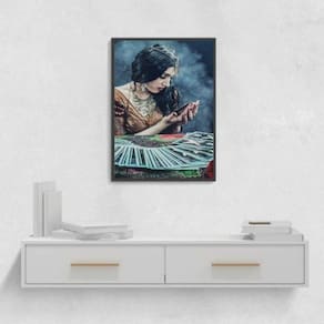 Quadro vintage cigana - cartomante 33x24cm - com vidro Moldura: madeira branca Informações do produto tire todas as suas dúvidas no descritivo abaixo: decoração para quarto, sala, cozinha, escritório, área gourmet e muito mais. Chega de paredes vazias medidas - cada peça tem 33x24cm a4 . Material do papel - papel fotográfico brilhante de altíssima resolução acabamento - todos os quadros são acompanhados de vidro para proteção da imagem. - moldura em madeira maciça na cor preta ou branca conforme produto escolhido e pendurador . - os quadros são embalados de forma segura com plástico bolha com camada dupla de acordo com o tamanho dos quadros. Garantia - garantia de 3 meses. Meu quadro chegou. Como posso fixá-lo Você precisa apenas de um martelo e um prego, pois os quadros já vão acompanhados de penduradores. Esta é a forma mais indicada. Como posso limpar meu quadro A limpeza é feita como um móvel comum da sua casa. Apenas um pano seco ou espanador são suficientes para tal
